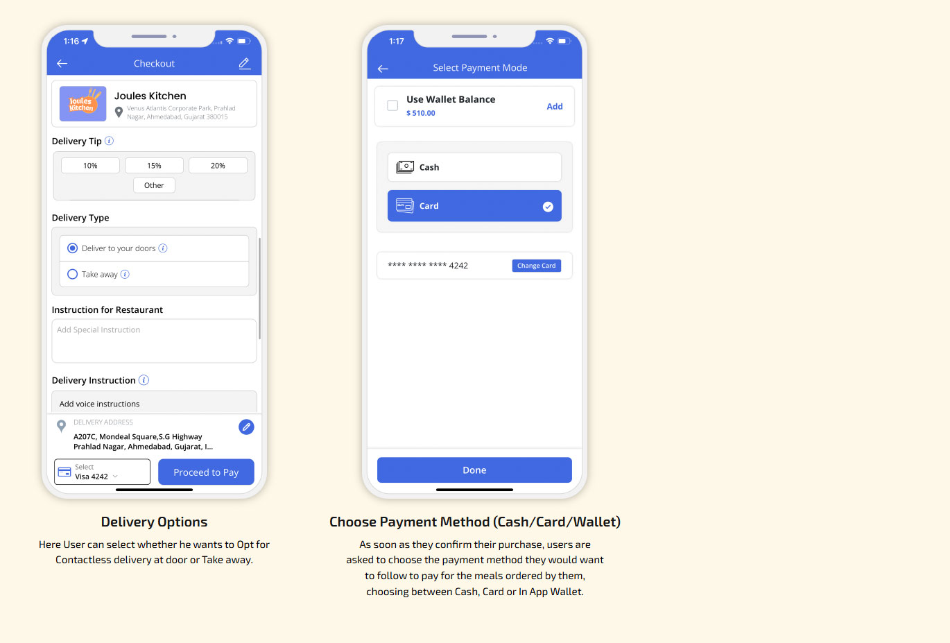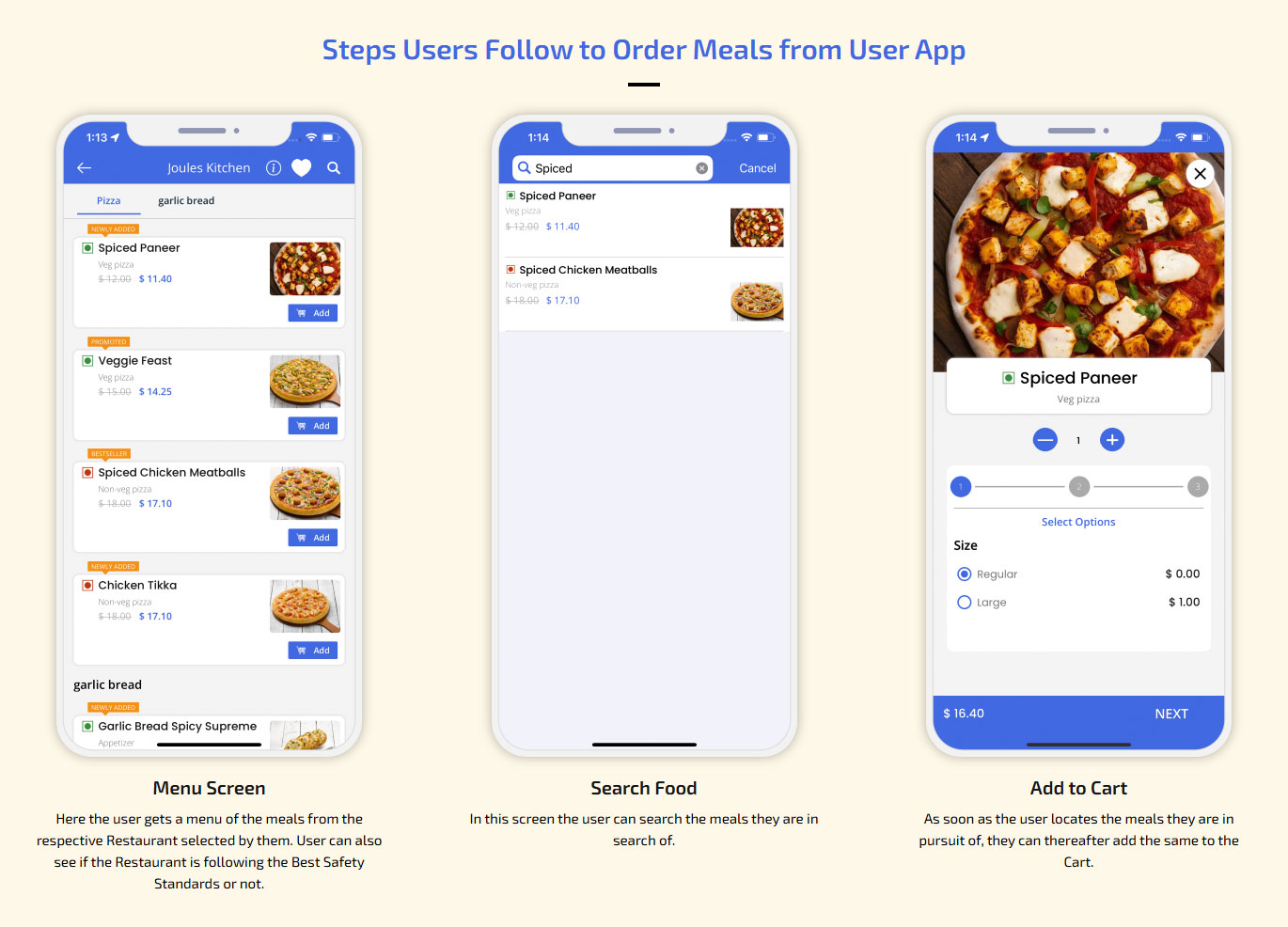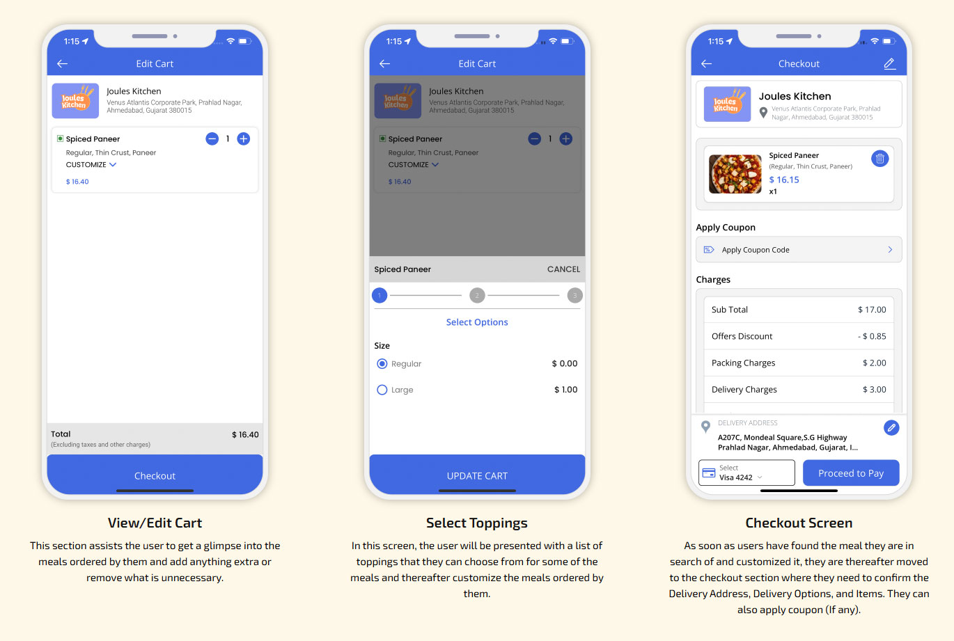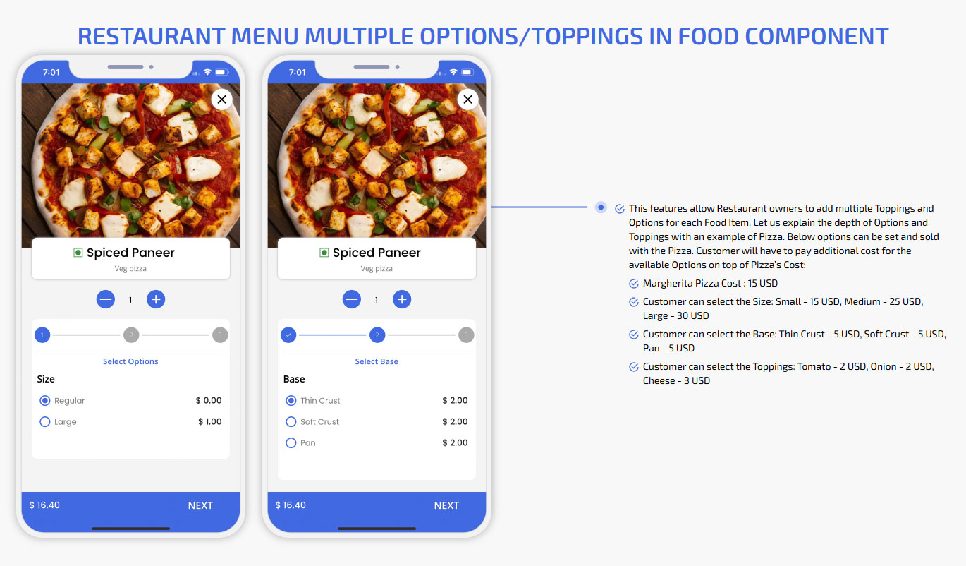 Restaurant menu multiple options/toppings in Food Component