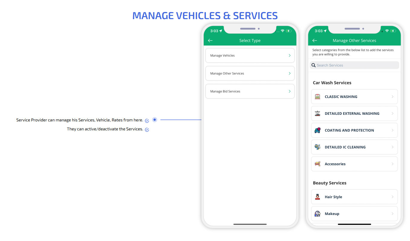 Manage Vehicles & Services